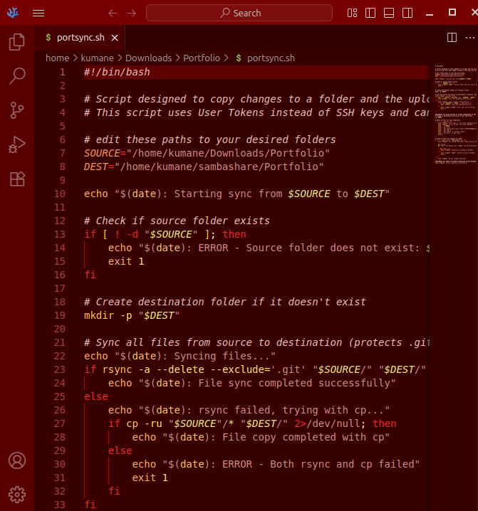 GitHub integration can be commented out for a simpler backup solution. By setting the destination drive to a network drive path, the script allows you to very quickly transfer files across your local network. Rsync natively supports SSH, allowing you to automate SSH backups to completely remote locations as well.